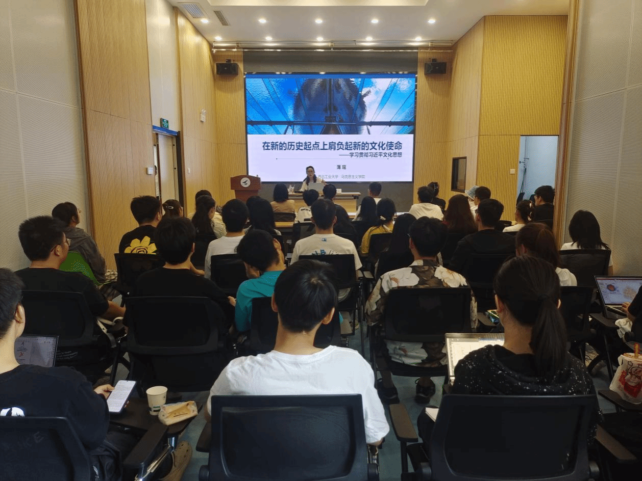 蒲瑶以《在新的历史起点上肩负起新的文化使命--学习贯彻习近平文化思想》为题,从世情、国情和党情入手,结合自身成长、求学和工作经历深入浅出地阐述了深刻认识习近平文化思想的时代背景、准确把握习近平文化思想的丰富内涵等内容。