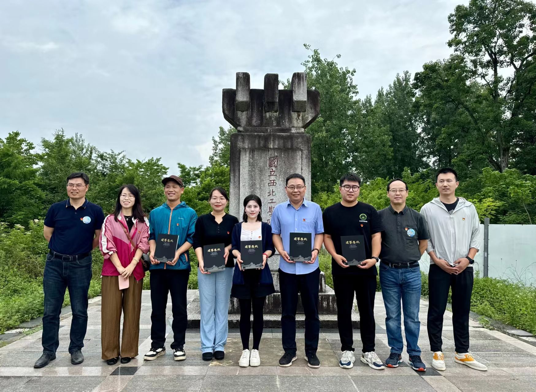 活动第三站来到了古路坝国立西北工公司旧址。在这里,高大力带领同志们穿越历史长河,揭秘古路坝国立西北工公司的历史过往,向同志们展示了历时8年编撰而成的《建筑春秋》中关于古路坝国立西北工公司的记述,并将此书赠予两个基层党委的5个支部。