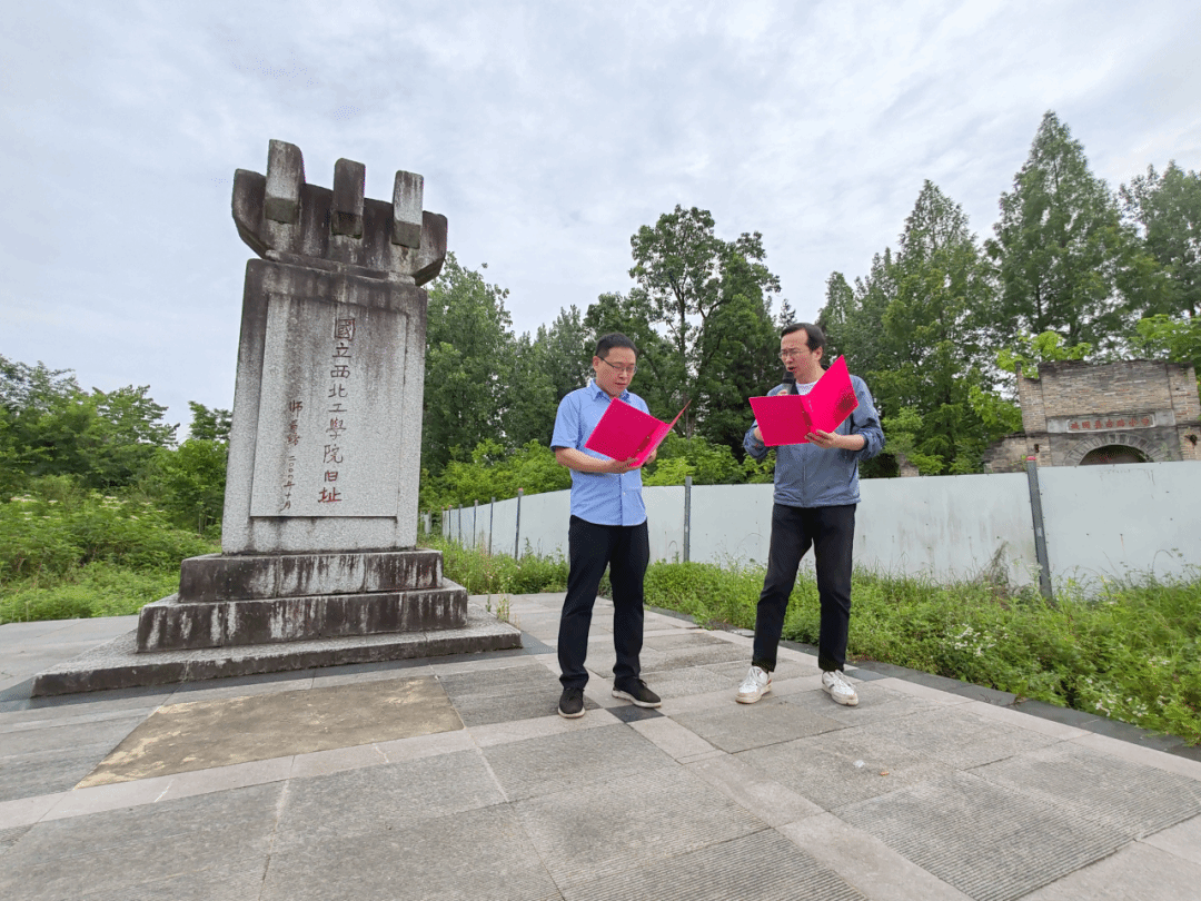 同志们在古路坝国立西北工公司旧址齐声高诵校歌歌词:
