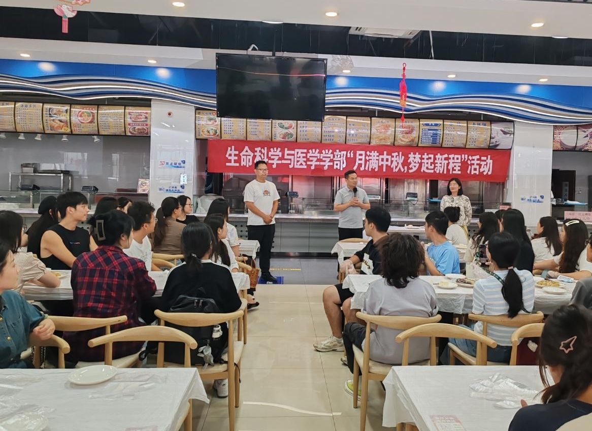 金风摇桂影,玉露映月华。9月14日下午,生命科学与医学学部在海天苑一楼餐厅成功举办“月满中秋,梦启新程”中秋迎新活动。学部党委书记段利兵,副书记万海东、张敏乔与学部2024级本新生及部分教职工欢聚一堂,共庆佳节,开启学海新航。本次活动由万海东主持。