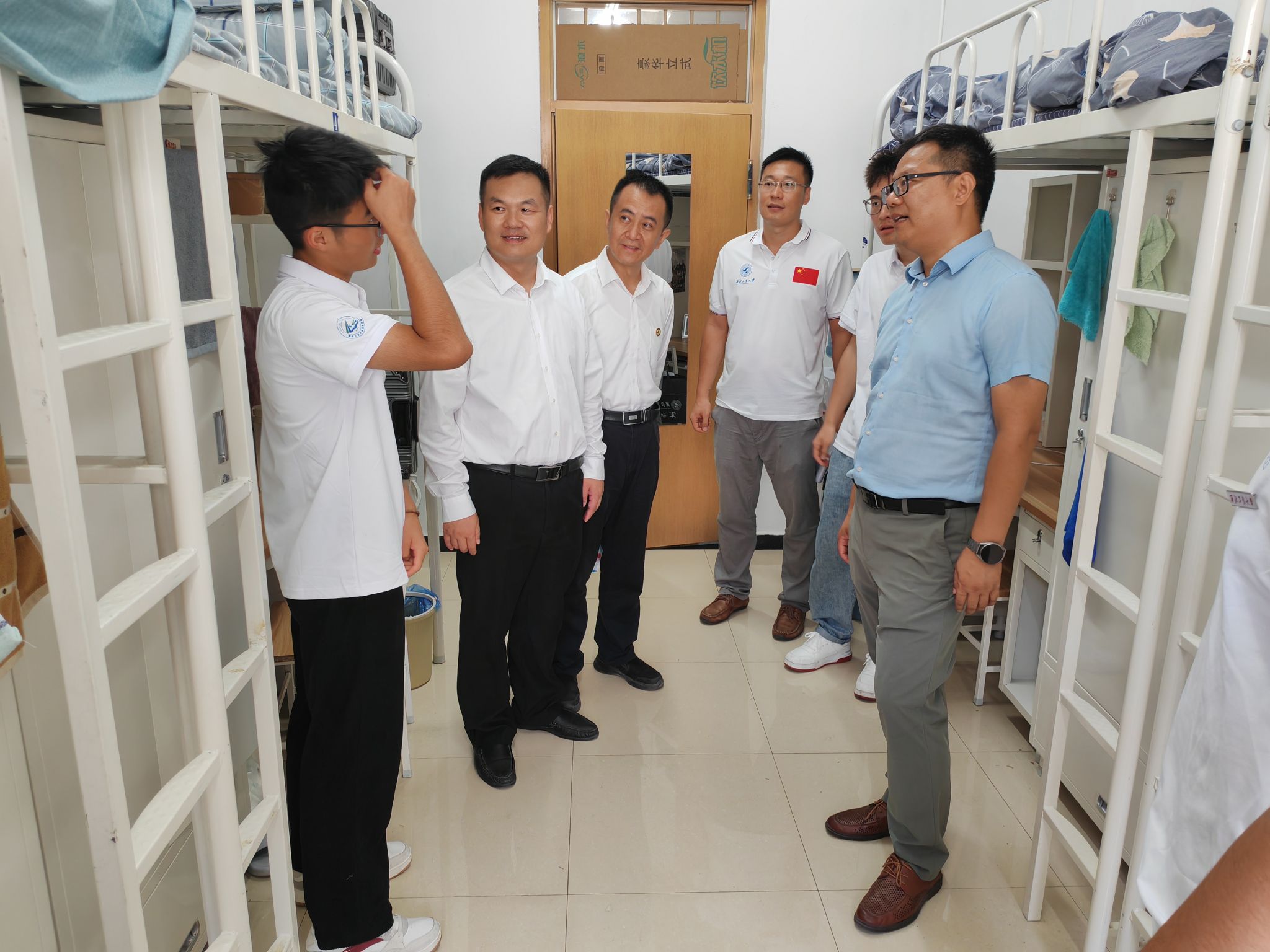在此次走访活动中,学部党委书记段利兵带领学部领导和辅导员、班主任逐一走进新生宿舍,与刚刚迈入老员工活的同学们进行亲切交流。学部领导们详细询问了新生的家乡、饮食习惯、兴趣爱好以及对未来老员工活的规划,表达了学部对新同学们的亲切关怀,希望同学们要尽快转换角色适应老员工活,养成良好的生活学习习惯,扎实学好专业知识,加强身体素质训练,努力提高综合素养,争做德智体美劳全面发展的新时代老员工。
